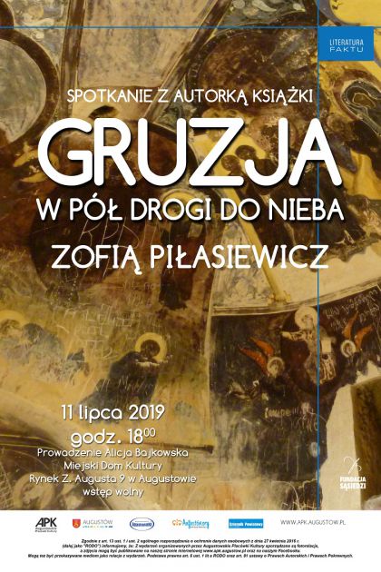 Augustowskie Placówki Kultury oraz Zofia Piłasiewicz serdecznie zapraszają w czwartek 11 lipca do Miejskiego Domu Kultury przy Rynku Zygmunta Augusta 9, gdzie o godz. 18:00 rozpocznie się promocja książki „Gruzja. W pół drogi do nieba”.