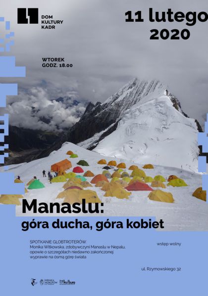 Manaslu (8156 m), znajdująca się w Nepalu ósma góra świata, w rankingu najbardziej niebezpiecznych ośmiotysięczników, zajmuje niepochlebne piąte miejsce. Czy zasłużenie? O szczegółach niedawnej wyprawy opowie Monika Witkowska, która wraz z Joanną Kozanecką została czwartą/piątą Polką na tym szczycie. W trakcie pokazu dowiemy się, co się kryje pod pojęciami: magiczny ice fall, odlot na szczycie, raki w klacie, czy Chińczyk na drabinie i co widać ze szczytu?