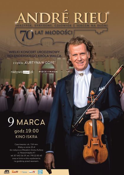 Augustowskie Placówki Kultury zapraszają na kolejną odsłonę teatralnego cyklu „Kurtyna w górę”. Tym razem mamy dla Państwa retransmisję wielkiego urodzinowego koncertu holenderskiego króla walca Andrѐ Rieu, który obejrzymy na ekranie kina Iskra 9 marca o godz. 19:00*.