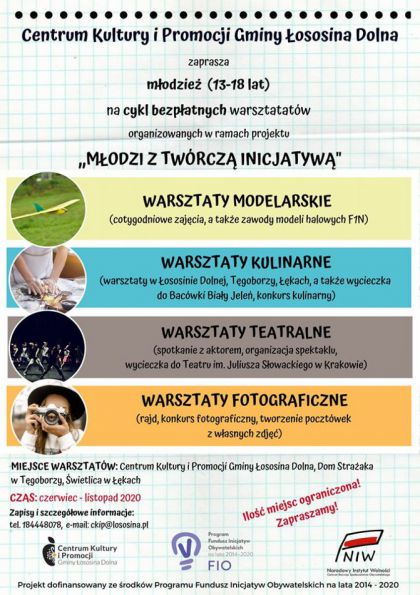 Zapraszamy na cykl bezpłatnych warsztatów, organizowanych w ramach projektu „Młodzi z twórczą inicjatywą”, które rozpoczniemy w czerwcu.