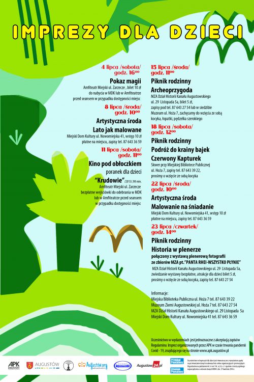 Uczestnictwo w wydarzeniach jest jednoznaczne z akceptacją zapisów Regulaminu Imprez organizowanych przez APK w czasie trwania epidemii CVID-19, znajdującego się na stronie internetowej www.apk.augustow.pl