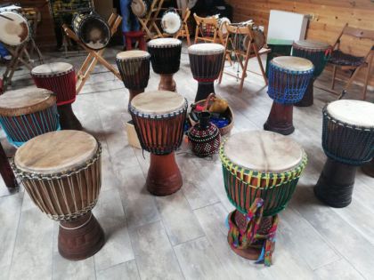 Serdecznie zapraszamy na warsztaty gry na afrykańskich bębnach DJEMBE. Bębny djembe pochodzą z regionu Afryki Zachodniej. Na warsztacie uczestnicy poznają podstawy techniki gry na tym fascynującym instrumencie. Dowiedzą się co to jest bas, ton i slap. Poznają autentyczne rytmy i akompaniamenty afrykańskie. Warsztaty bębniarskie to świetna zabawa w zrelaksowanej atmosferze. Gratka dla osób, które zawsze czuły, że pociąga je rytm. Poziom początkujący.