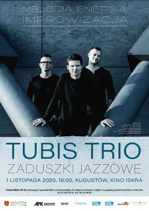 Augustowskie Placówki Kultury zapraszają wszystkich miłośników dobrej muzyki i ciepłego brzmienia na Zaduszki Jazzowe. 1 listopada o godz. 19:00 na scenie augustowskiego kina „Iskra” stanie artystyczne trio jazzowe – Tubis Trio.