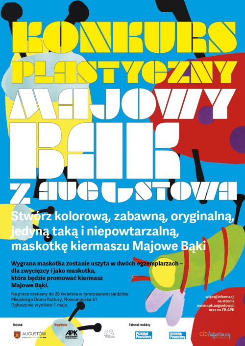 Augustowskie Placówki Kultury przepełnione wiosennym nastrojem ogłaszają konkurs plastyczny „Majowy Bąk z Augustowa”. Zachęcamy do wzięcia udziału w nim dzieci w wieku od 6 do 16 lat i narysowania, namalowania lub wyklejenia oryginalnego, niepowtarzalnego, jedynego takiego Majowego Bąka.