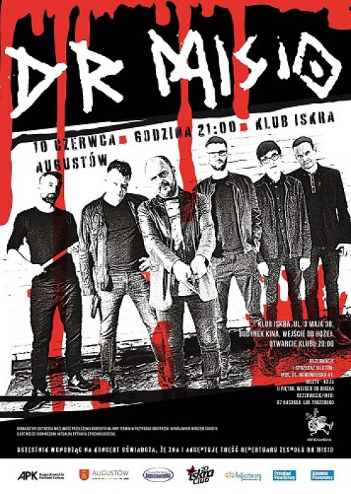 Augustowskie Placówki Kultury z radością zapraszają na koncert zespołu Dr Misio, który miał odbyć się 20 marca – nowa data wydarzenia to 10 czerwca 2021 o godz. 21:00 w Klubie Iskra (ul. 3 Maja 38).