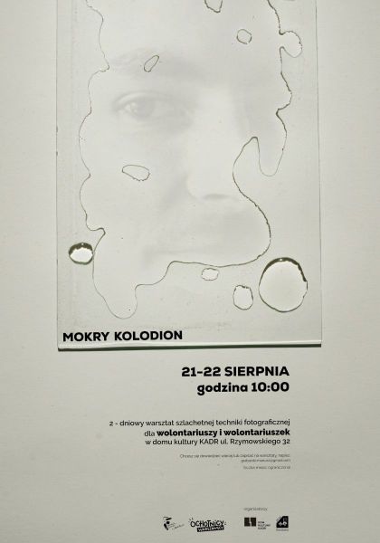 Warsztaty z mokrego kolodionu moglibyśmy nazwać również warsztatami techniki kolodionowej, procesu kolodionowego albo warsztatami techniki mokrej płyty kolodionowej. Wszystkie te nazwy są właściwe i dotyczą tego samego, a mianowicie procesu rozpowszechnionego w latach 50. XIX wieku. Powtarzające się słowo kolodion – to nic innego jak roztwór nitrocelulozy, używany jako nośnik halogenków srebra tworzących obraz. Czy to trudne, niezrozumiałe i tajemnicze? Dzięki prowadzącemu spotkanie, wykładowcy Akademii Sztuk Pięknych w Warszawie – Mariuszowi Gajewskiemu takie nie będzie. Przez dwa dni, poprzez działania praktyczne zanurzycie się w historię fotografii i wykonanie własne prace kolodionowe. Zachęcamy do wzięcia udziału wolontariuszy i wolontariuszki oraz osoby chcące włączyć się w działania dla Domu Kultury KADR i Domu Kultury Dorożkarnia.