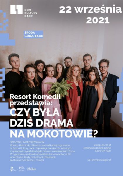Komicy i komiczki z Resortu Komedii przejmują scenę w Domu Kultury Kadr i zapraszają na wieczór, w którym inspiracją do spektaklu będą dramy z mokotowskich forów. Co dręczy mieszkańców? Jakie tematy podnoszą ciśnienie? Przypomnimy najbardziej spektakularne awantury 2021 oraz chwile, kiedy mokotowski Facebook był krainą życzliwości i miłości. A co zobaczycie na scenie? Kulisy lokalnych kłótni, dalsze perypetie bohaterów albo absurdalne rozwiązania zgłaszanych problemów. Admini i adminki mokotowskich grup – ten wieczór może ukoić Wasze nerwy.