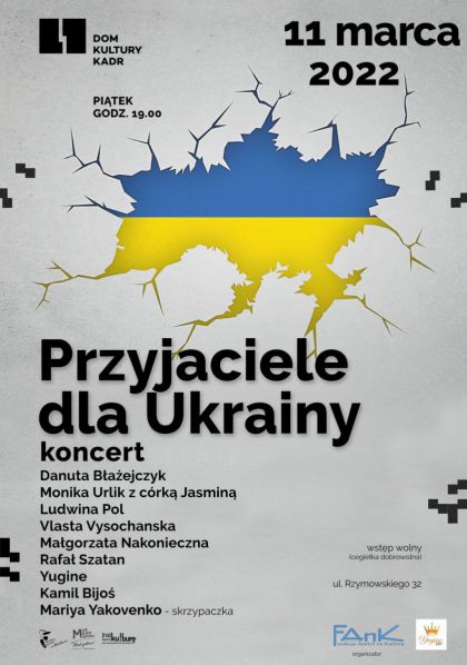 W koncercie poza polskimi artystami: Danutą Błażejczyk, Moniką Urlik z córką Jasminą, Małgorzata Nakonieczną, Ludwiną Pol, Kamilem Bijosiem, Rafałem Szatanem, Yuginem, wystąpią artyści z Ukrainy: Vlasta Vysochanka i skrzypaczka Mariya Yakovenko.