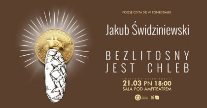 21 marca corocznie obchodzony jest Światowy Dzień Poezji. Z tej okazji MOK Olsztyn zaprasza Was serdecznie na kolejne spotkanie z cyklu "Poezję czyta się w poniedziałek". 21 marca o godz. 18:00 naszym gościem będzie Jakub Świdziniewski, olsztynianin, którego debiut poetycki "Bezlitosny jest chleb" został wydany w 2022 roku przez Miejski Ośrodek Kultury w Olsztynie.