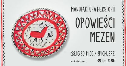 MOK Olsztyn serdecznie zaprasza na kolejne spotkanie z cyklu "Manufaktura herstorii". tym razem Lolita Igorivna-Wrzeczynska rozsnuje przed Wami "Opowieści Mezen" w sobotę 28 maja o godz. 11:00 w Spichlerzu przy Piastowskiej 13.
