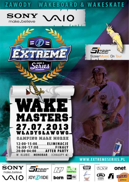 Sony VAIO Wake Masters to czwarta odsłona tegorocznego cyklu zrzeszającego sporty ekstremalne Sony VAIO Extreme Series 2013, który potrwa do końca roku. W ramach projektu odbędą się zawody w różnych dyscyplinach ekstremalnych, takich jak zjazd rowerowy czy snowboarding. Każdemu wydarzeniu sportowemu towarzyszy niezmiennie seria imprez muzycznych Sizeer Music On Tour.