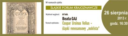 Temat: CASPAR URSINUS VELIUS - ŚLĄSKI RENESANSOWY "NOBLISTA"