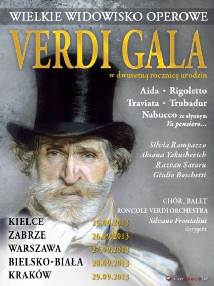 "Verdi Gala" to przygotowany z rozmachem spektakl muzyczno-sceniczny, który łączy w sobie najpiękniejsze fragmenty najpiękniejszych oper, m.in.: La Traviata, Rigoletto, Aida, Nabucco.