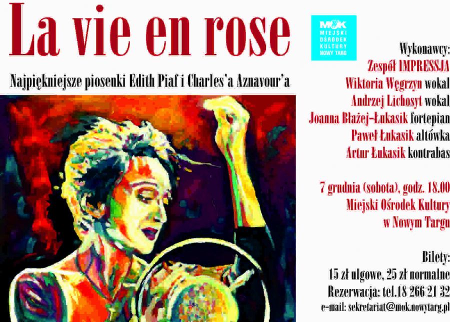 Najpiękniejsze piosenki Paryża z repertuaru Edith Piaf i Charles’a Aznavour’a w Nowym Targu!
