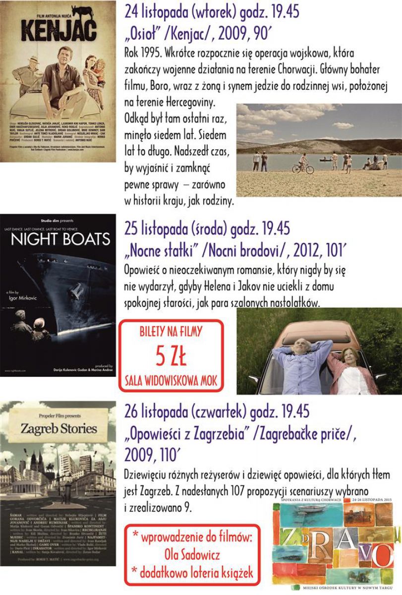 Pokazy filmów w ramach imprezy "Zdravo! Spotkania z kulturą Chorwacji"