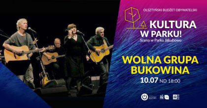 MOK Olsztyn zaprasza na bezpłatny koncert zespołu Wolna Grupa Bukowina, który wystąpi na plenerowej scenie w sąsiedztwie jeziorka Mummel w niedzielę 10 lipca o godz. 18:00. Wydarzenie odbędzie się w ramach projektu "Kultura w Parku!", finansowanego ze środków Gminy Olsztyn w ramach Olsztyńskiego Budżetu Obywatelskiego..