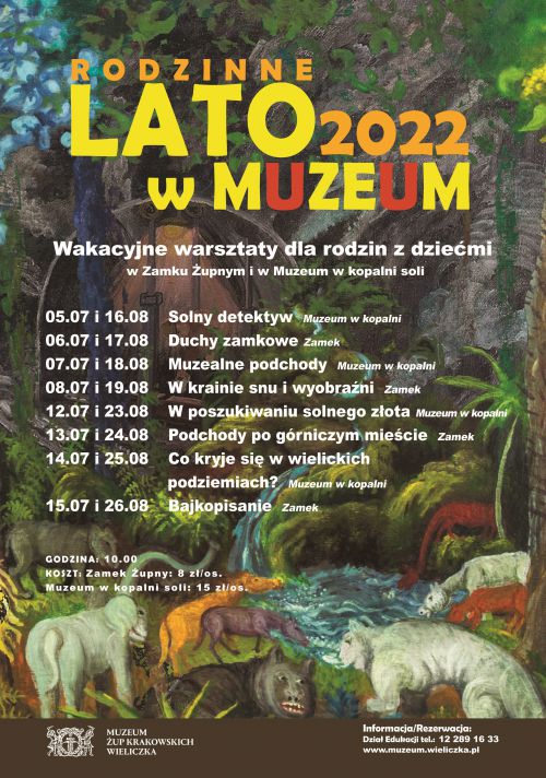 Muzeum Żup Krakowskich Wieliczka zaprasza na "Rodzinne Lato w Muzeum" do Zamku Żupnego i Muzeum w kopalni soli. Odmienność miejsc gwarantuje różnorodność plenerów, nastrojów i wrażeń. Spotkania odbędą się w okresie 5 -15.07 i 16 – 26.08.2022 o godz. 10.00.