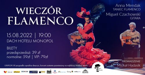 Ta dwójka to absolutna ścisła, europejska czołówka artystów promujących na całym świecie muzykę i taniec Flamenco. W blasku zachodzącego słońca, na dachu Hotelu Monopol można będzie zatopić się w ich dźwiękach oraz podziwiać talent taneczny Anny Mendak.