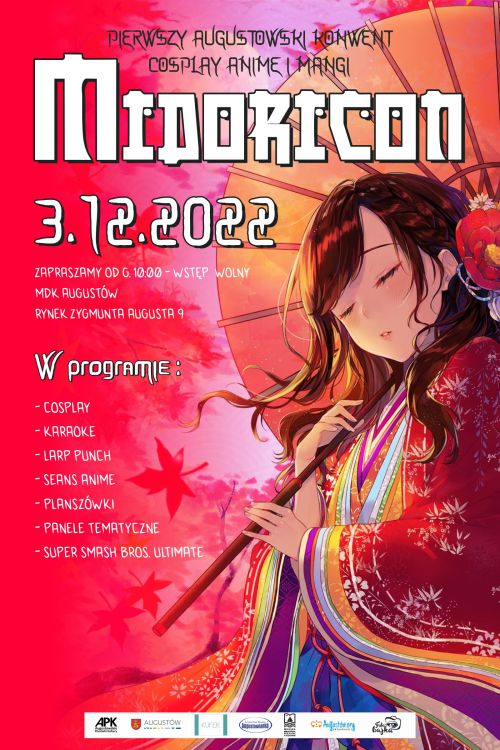 Będzie też stanowisko Miejskiej Biblioteki Publicznej w Augustowie, gdzie będziecie mogli wypożyczyć Mangę, a także pozycje popularnych autorów japońskich. Starania o szerszą ofertę stoisk trwają.