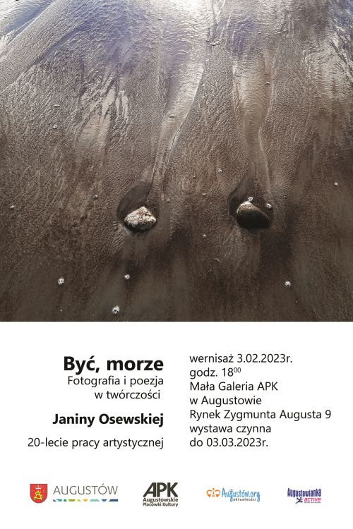 Mała Galeria APK zaprasza w piątek 3 lutego 2023r. o godzinie 18:00 do Miejskiego Domu Kultury (Rynek Zygmunta Augusta 9) na otwarcie wystawy „Być, morze” Fotografia i poezja w twórczości Janiny Osewskiej.