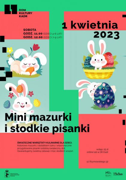 Nie wyobrażamy sobie Świąt Wielkanocnych bez mazurka. Zapraszamy dzieci na warsztaty kulinarne, na których odkryją tajniki przygotowania tego świątecznego przysmaku. Uczestnicy zajęć udekorują swoje ciasto oraz przygotują swoje pisanki, którymi udekorują koszyki oraz świąteczny stół. Gwarantujemy świetną zabawę i moc słodkich wrażeń!