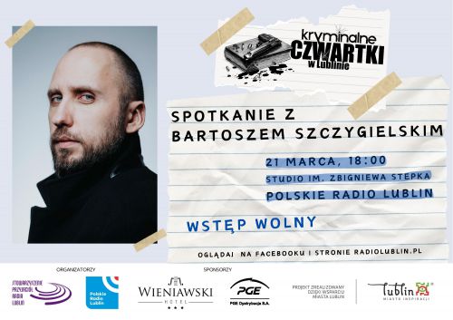 21 marca, godz. 18.00, Studio im. Zbigniewa Stepka, w cyklu Kryminalne czwartki w Lublinie – edycja XII spotkanie z Bartoszem Szczygielskim.