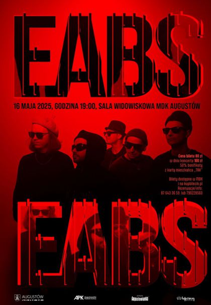 Augustowskie Placówki Kultury serdecznie zapraszają 16 maja 2025 roku o godz. 19:00 do sali widowiskowej MDK (Rynek Zygmunta Augusta 9, wejście od ul. Kościelnej II piętro) na koncert jazzowej grupy EABS, dzięki której usłyszymy muzykę futurystyczną!