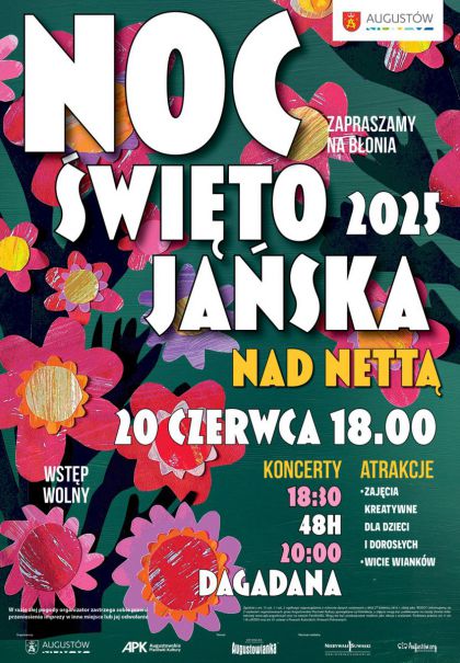 Augustowskie Placówki Kultury zapraszają do zabawy w prasłowiańskim klimacie. W piątek 20 czerwca 2025 r. już po raz kolejny błonia nad rzeką Nettą staną się miejscem świętojańskiego rodzinnego pikniku, na którym nie zabraknie tradycyjnych, ludowych elementów, dobrej muzyki i fantastycznej zabawy dla małych i dużych.