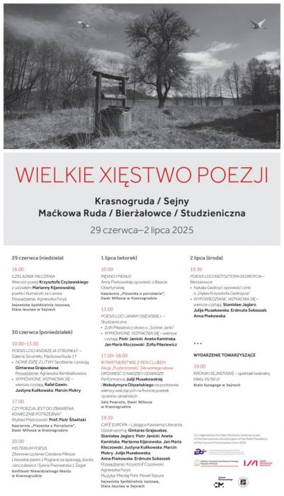 W dniach 29 czerwca – 2 lipca w Krasnogrudzie, Sajnach, Maćkowej Rudzie, Bierżałowicach i Studzienicznej odbywać się będzie Wielkie Xsięstwo Poezji. Organizowane przez sejneński ośrodek „Pogranicze – sztuk, kultur, narodów” (Fundacja Pogranicze) wydarzenie jest spotkaniem poetów i miłośników poezji.