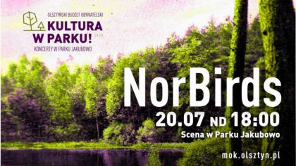 W ramach cyklu WYRWASY w olsztyńskim Parku Jakubowo wystąpi grupa NorBirds! MOK Olsztyn serdecznie zaprasza na bezpłatny koncert w niedzielę 20 lipca o godz. 18:00 na plenerowej scenie w sąsiedztwie jeziorka Mummel. Wydarzenie odbędzie się w ramach projektu „Koncerty w Parku Jakubowo. Kultura w Parku!”, finansowanego z Olsztyńskiego Budżetu Obywatelskiego.
