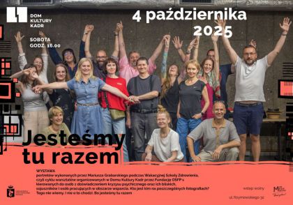 Portrety na wystawę „Jesteśmy tu razem” zostały wykonane przez Mariusza Grabarskiego podczas 4-godzinnej sesji towarzyszącej ostatniemu spotkaniu Wakacyjnej Szkoły Zdrowienia, czyli cyklu zajęć organizowanych w Domu Kultury KADR przez Fundację OSFP skierowanych do osób z doświadczeniem kryzysu psychicznego oraz ich bliskich, sojuszników i osób pracujących w obszarze wsparcia. Kto jest kim na poszczególnych fotografiach? Tego nie wiemy. I nie o to chodzi. Bo jesteśmy tu razem.