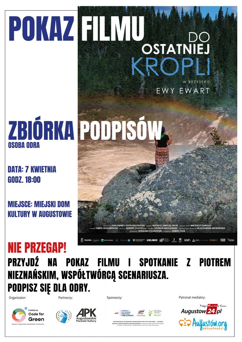 Pokaz filmu „Do ostatniej kropli” Ewy Ewart i zbiórka podpisów dla Odry