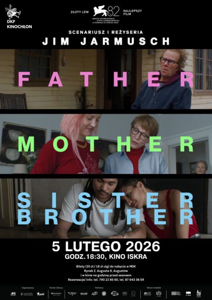 DKF KINOCHŁON zaprasza serdecznie na najnowszy film jednego z najbardziej znanych reżyserów niezależnych, Jima Jarmuscha. Obraz „Father Mother Sister Brother” będzie można zobaczyć w augustowskim kinie Iskra (ul. 3 Maja 38) już w czwartek 5 lutego 2026 roku o godz. 18:30.
