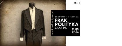 MOK Olsztyn zaprasza na kolejną prezentację eksponatu miesiąca! Wydarzenie „Frak polityka z lat 30.” rozpocznie się w środę 11 marca o godz. 17:00 w Zajezdni trolejbusowej przy ul. Knosały.